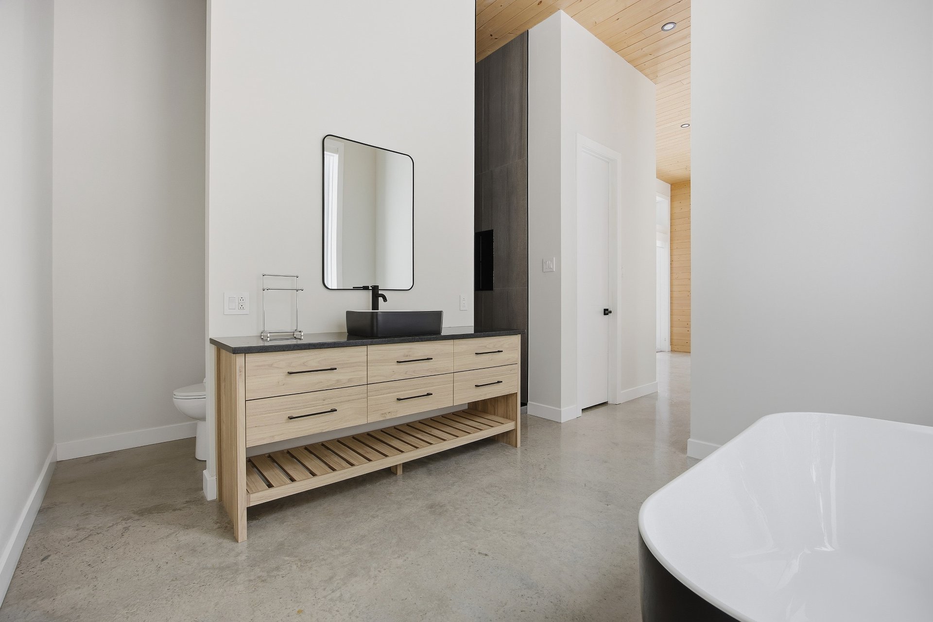 L'ensemble de la propriété est muni de planchers de béton chauffants, assurant un confort thermique optimal et une qualité de vie accrue en toute saison.