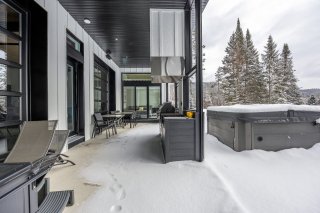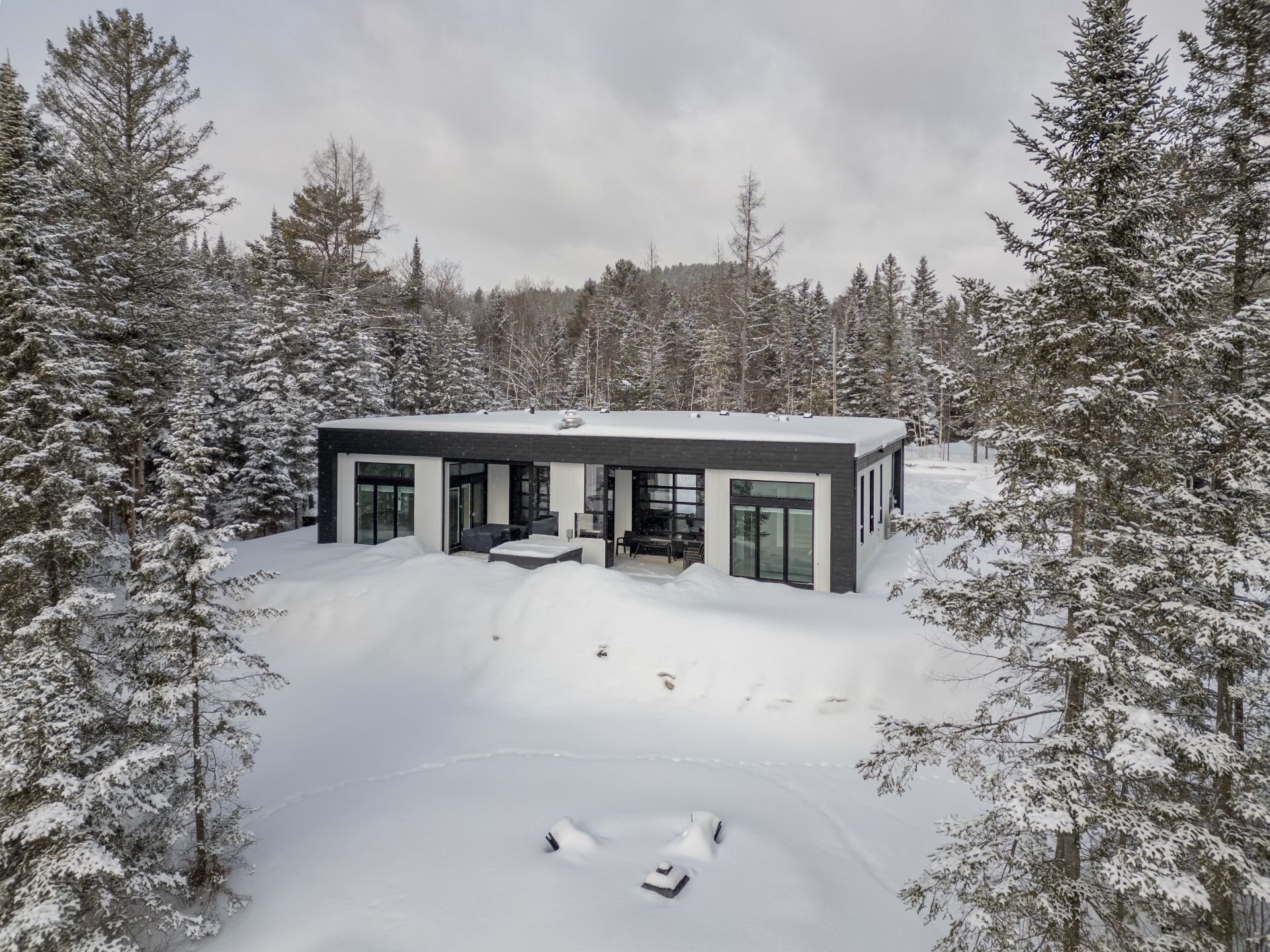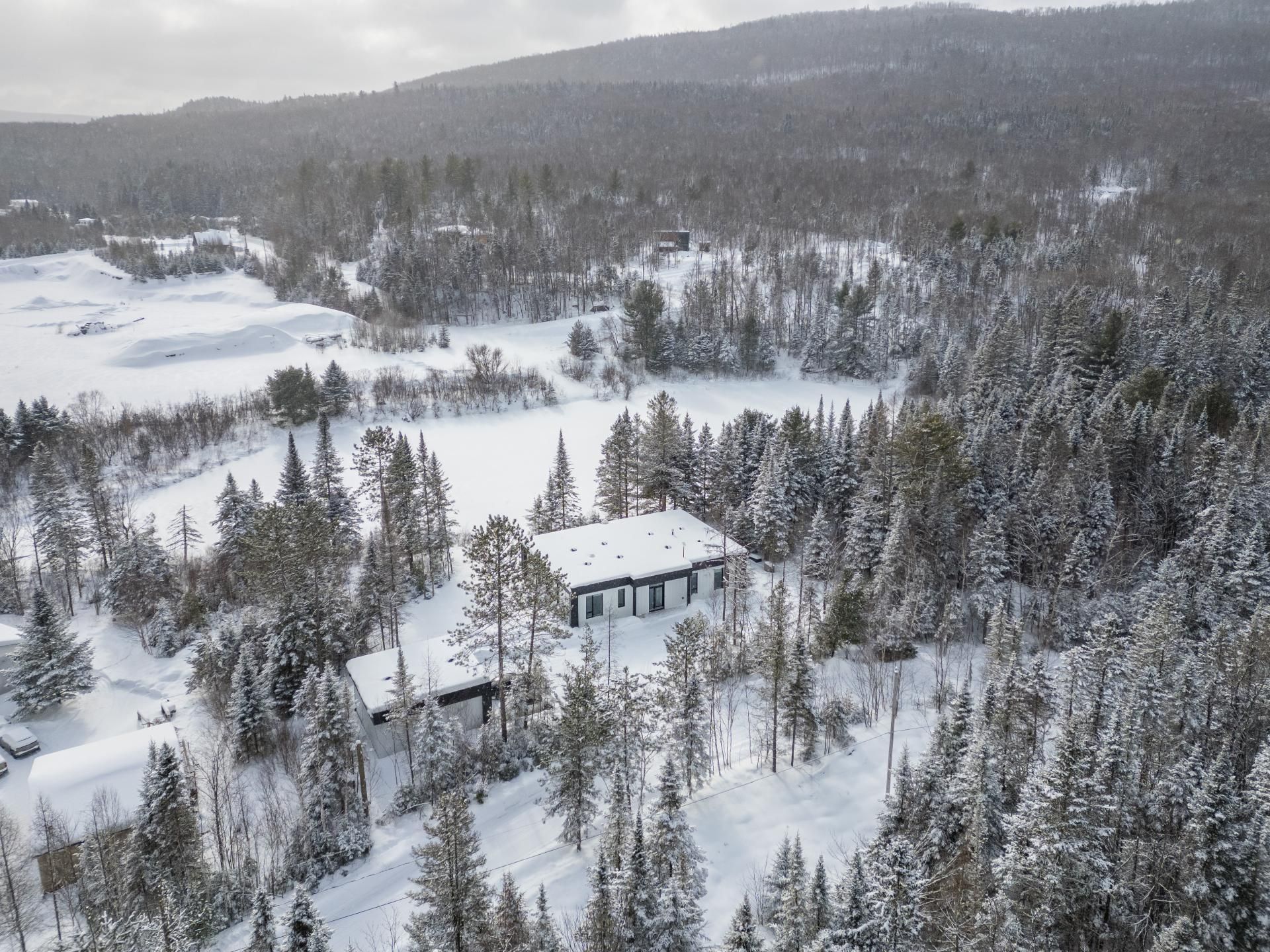 Nichée au coeur de la nature à Saint-Côme, cette propriété contemporaine offre un cadre de vie exceptionnel où tranquillité et panoramas grandioses se rencontrent. Implantée sur un vaste terrain boisé, avec vue imprenable sur les montagnes et un décor enchanteur en toute saison, elle séduit par son architecture moderne aux lignes épurées et sa luminosité abondante. La résidence principale, accompagnée d'un garage détaché, propose des espaces de vie ouverts et invitants, parfaits pour profiter du paysage en toute intimité. Un véritable havre de paix pour les amoureux de plein air, à proximité des activités récréatives.