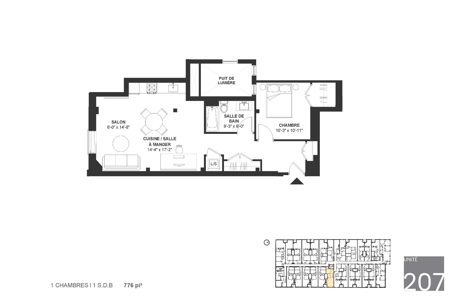 | Salon | 6.0 x 14.8 P | 2ième étage | |