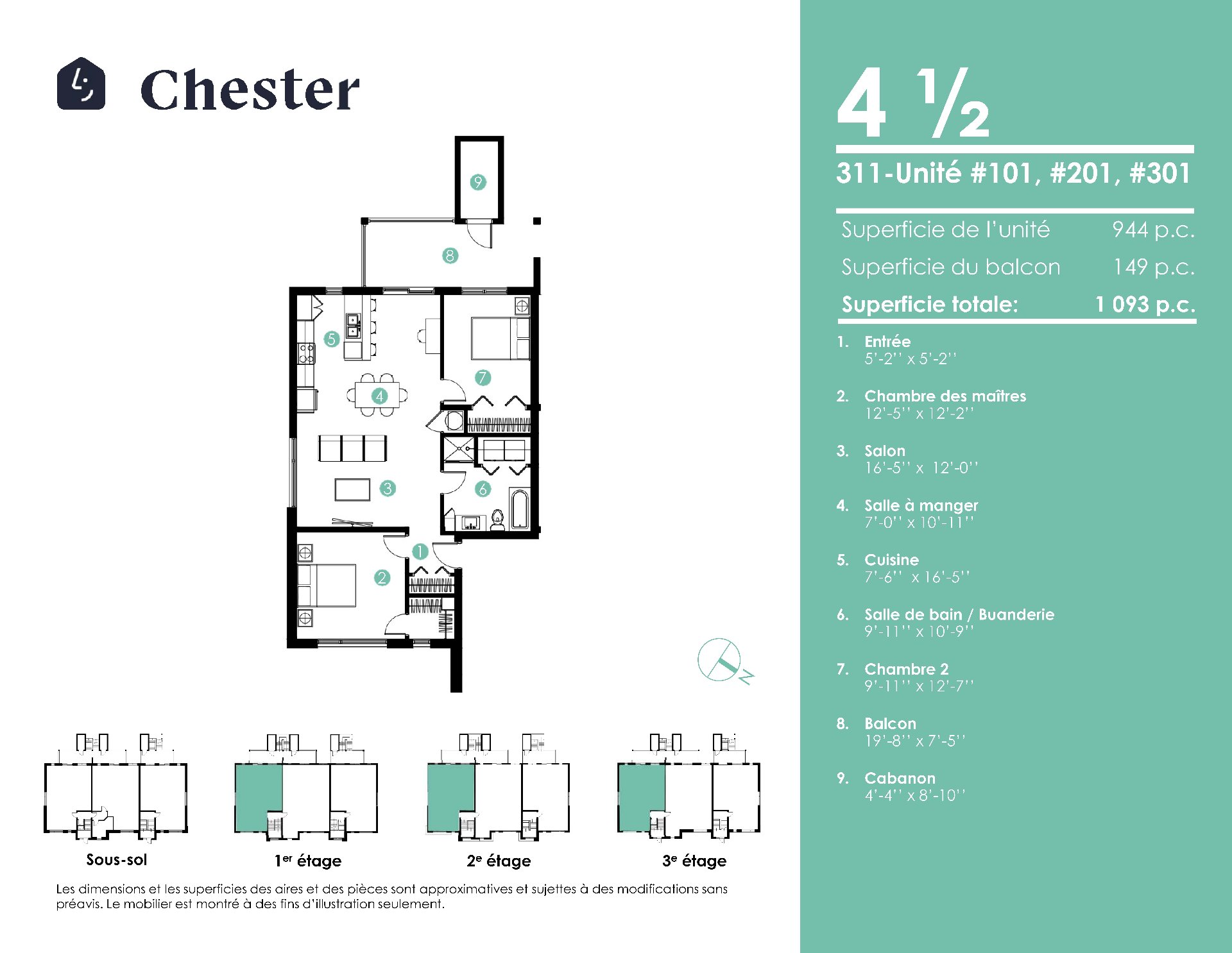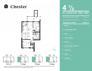 | Salon | 16.5 x 12.0 P | Rez-de-chaussée | Plancher flottant |