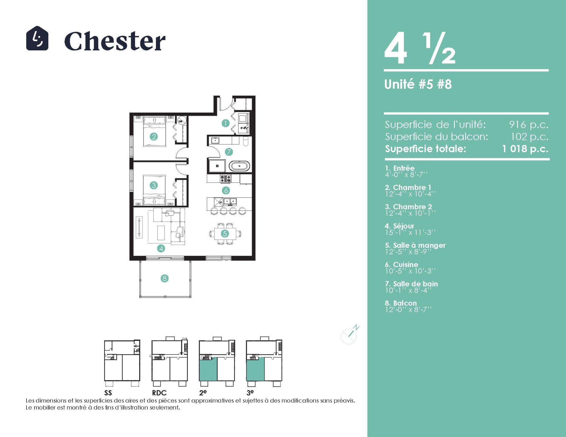 | Salle de bains | 10.1 x 8.4 P | 2ième étage | Céramique |