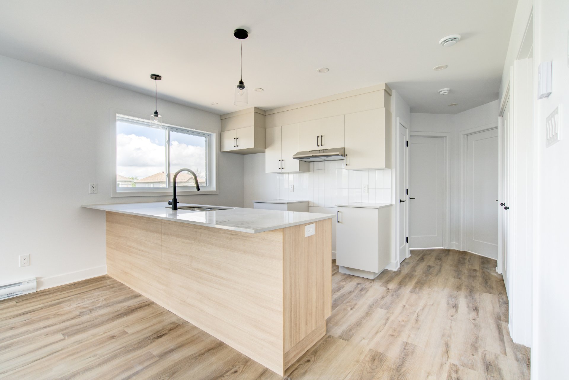 - Cuisine fonctionnelle avec rangement et comptoirs en