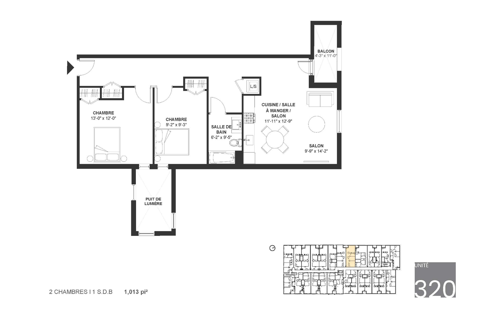 | Salon | 9.9 x 14.2 P | 3ième étage | |