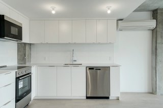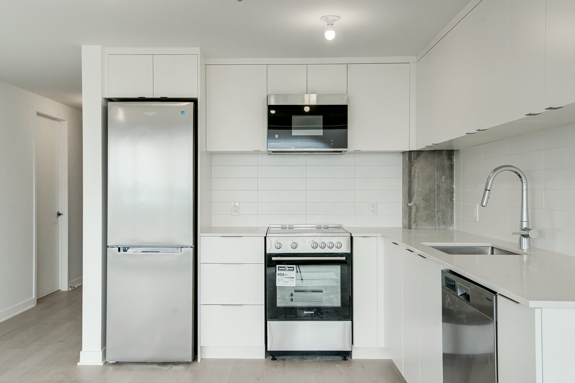 Inclus : Électroménager de style européen 24'' comprenant : réfrigérateur, cuisinière, lave-vaisselle (*24'' ou 19'' selon modèle unité se référer au plan), hotte tiroir (*ou hotte micro-ondes selon modèle de l'unité se référer au plan), Laveuse et Sécheuse