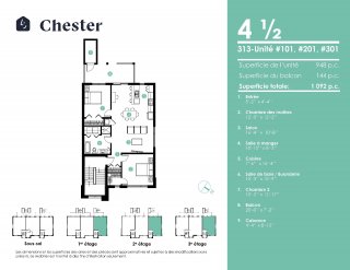| Salon | 16.4 x 10.8 P | 3ième étage | Plancher flottant |