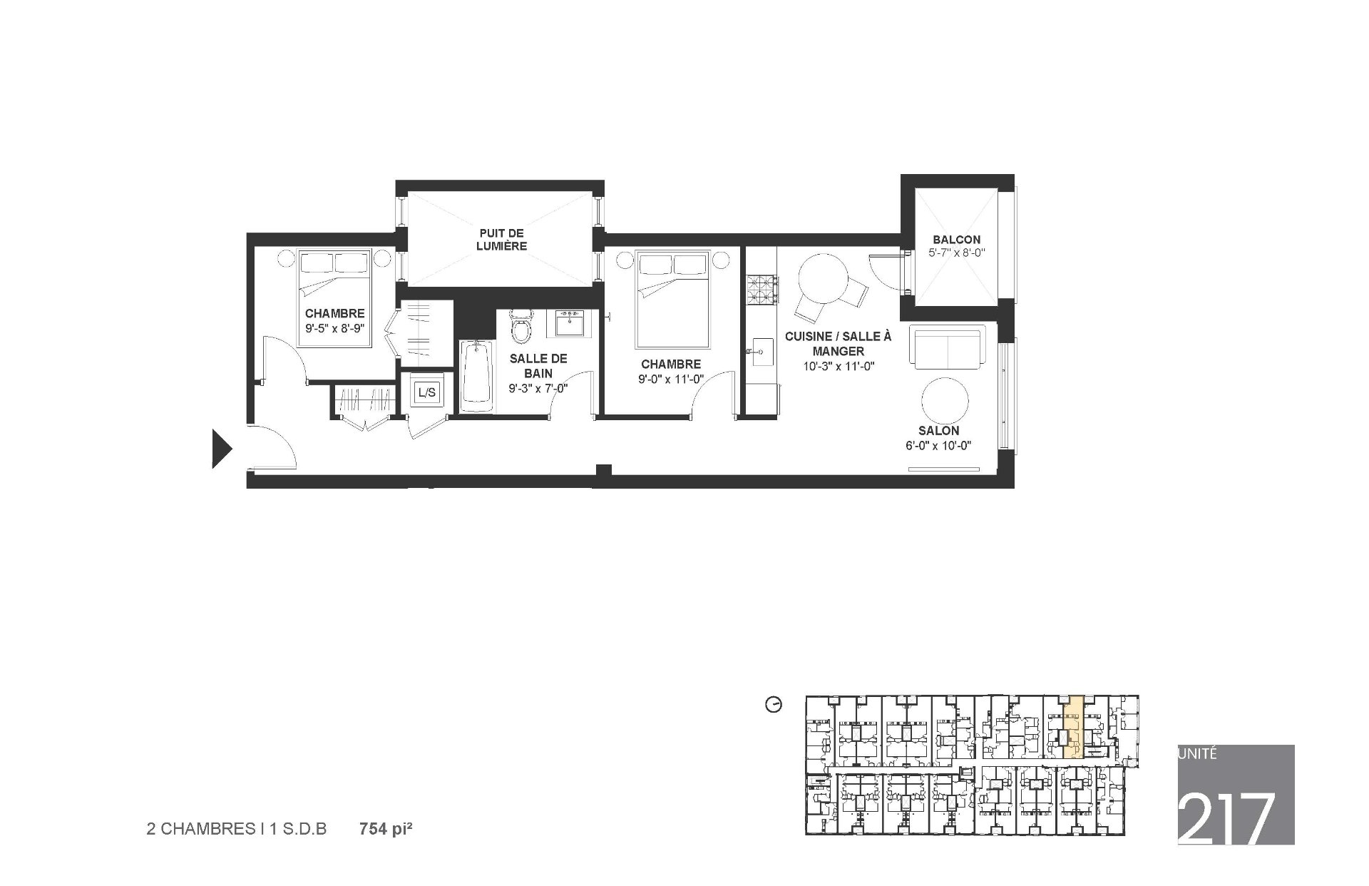 | Salon | 6.0 x 10.0 P | 2ième étage | |