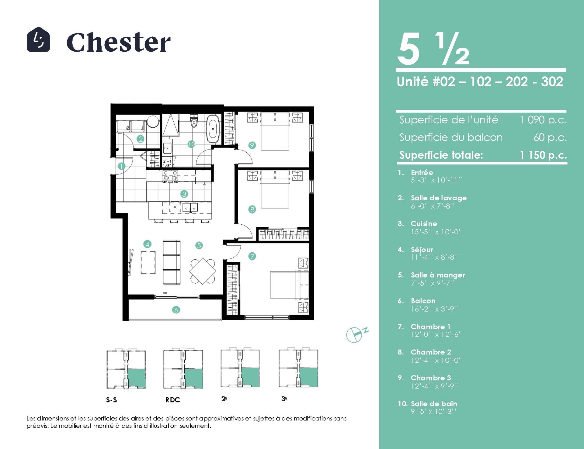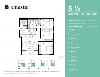| Salon | 11.4 x 8.8 P | 2ième étage | Plancher flottant |